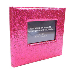 Couverture en cuir PU Rose vif Paillettes Album Photo 4x6 "Slip in Memo 200 Photos Livre Albums reliés avec fenêtre découpée