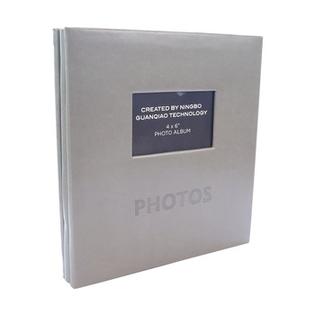 500 hình ảnh Album ảnh 4x6 "màu xám PU Leather bìa với cửa sổ trượt trong bài ràng buộc nhân tạo Album ảnh với cửa sổ